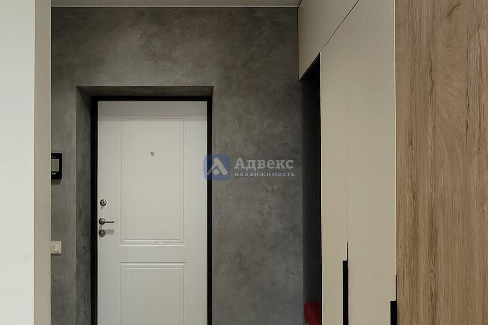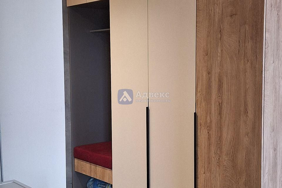 Функциональная прихожая: Вас встретит вместительный новый шкаф, а мягкий подвесной пуф добавляет комфорта. Большое ростовое зеркало с подсветкой у входа – это не только стильный элемент, но и практичное решение для завершающего штриха перед выходом.