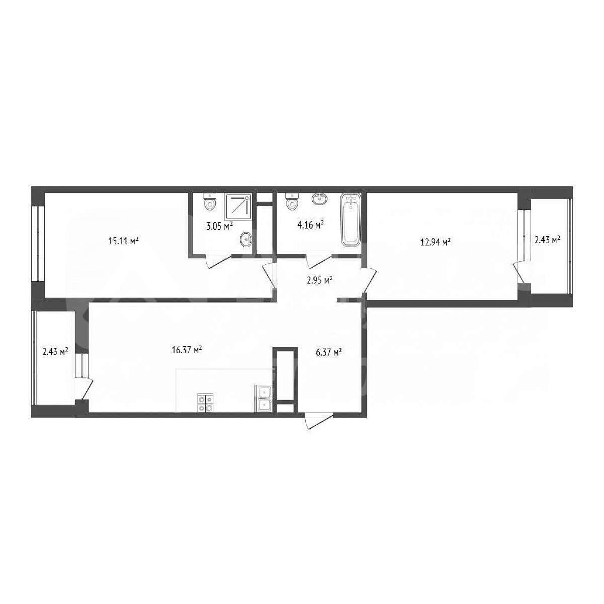 · Две лоджии — дополнительное пространство для отдыха или хранения.
