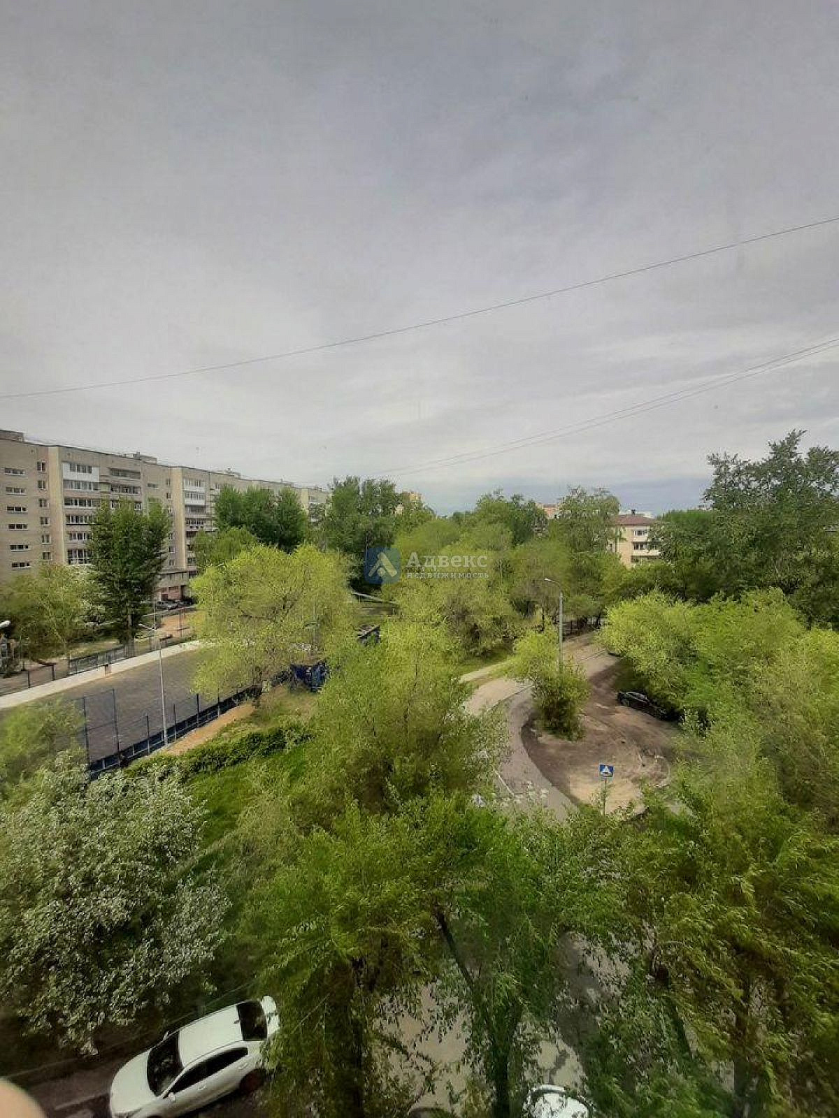 Во дворе оборудована детская площадка с футбольным полем( и катком зимой).