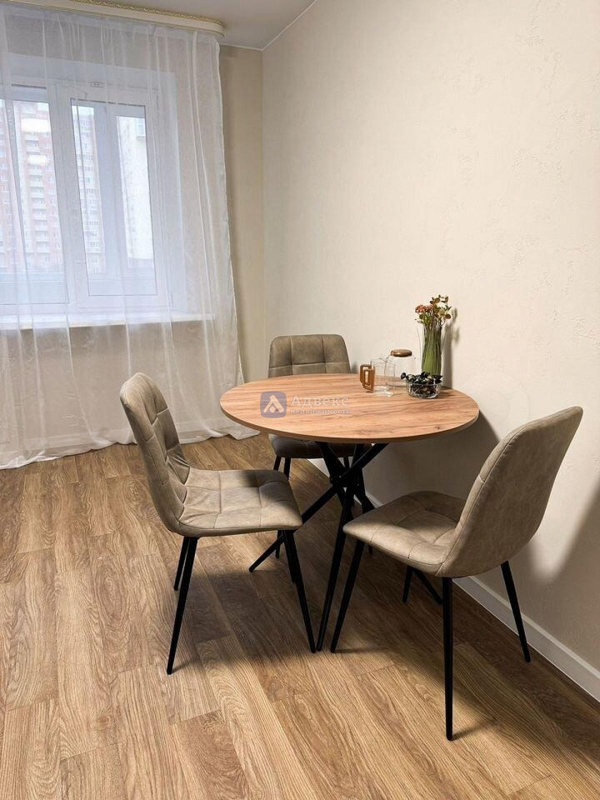 Свежий ремонт: долговечный кварцвинил в комнатах и практичная плитка в санузлах, фактурная штукатурка на стенах.