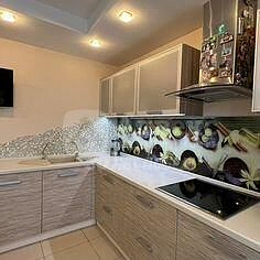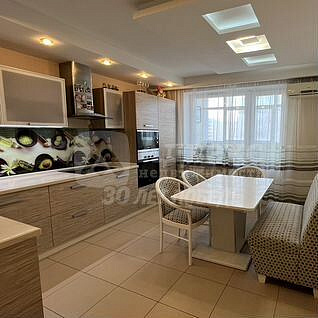 Кухня площадью 15 кв.м. оборудована современной техникой, включая холодильник и посудомоечную машину. Ванная комната совмещенная, что также добавляет удобства. В прихожей предусмотрены вместительные шкафы для хранения вещей, а во всех комнатах установлен кондиционер.