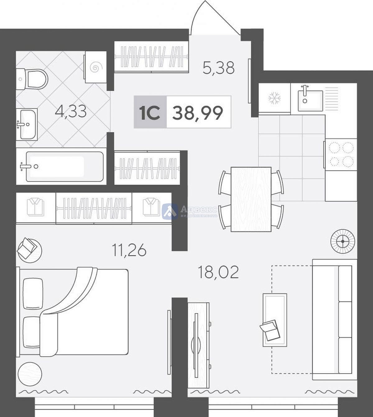 Продаётся уютная однокомнатная квартира в новом доме на 12 этаже. Общая площадь квартиры составляет 38.99 кв.м., из них на кухню приходится 18 кв.м. Это модный и презентабельный вариант жилья, который подойдёт как для молодых людей, так и для семейных пар.