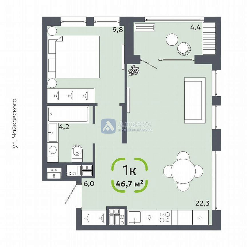 ЖК расположен на пересечении улиц Ватутина, Щербакова и Чайковского — это тихий, спокойный район в Центральном округе Тюмени.