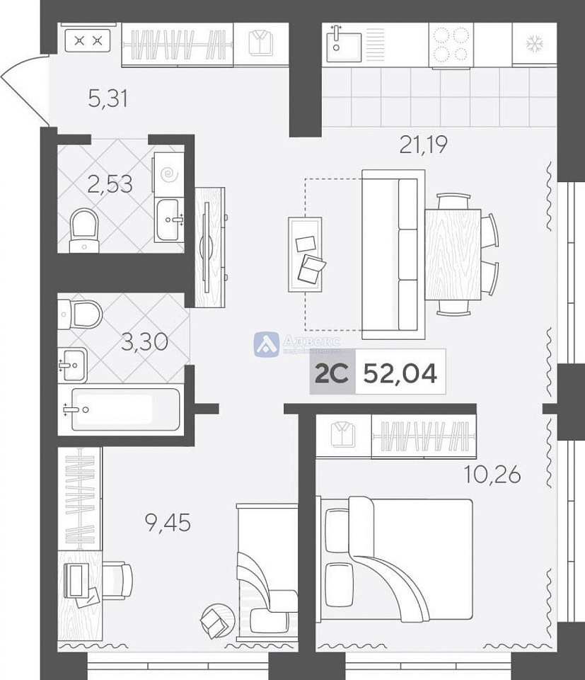 Продаётся просторная 2-комнатная квартира в новом доме на 16 этаже. Общая площадь квартиры составляет 52.04 кв.м., при этом площадь кухни составляет 21,19 кв.м. Это идеальный вариант для тех, кому важен комфорт и удобство.