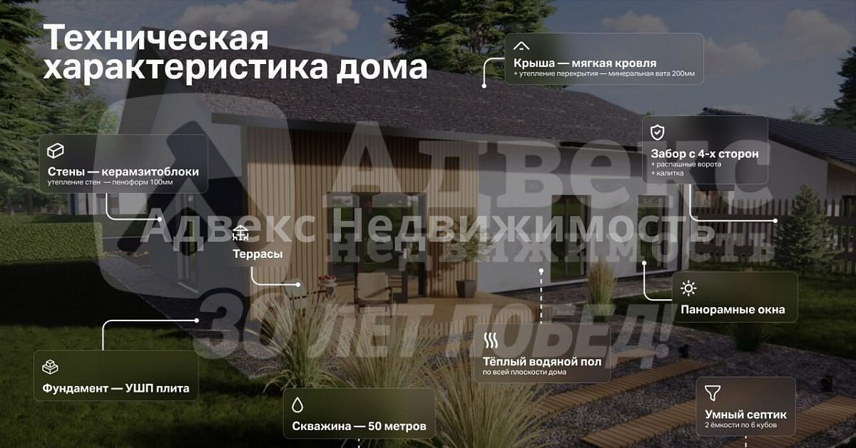 ID: 806388 Уютный современный дом общей площадью 105 кв м. формата 3+ на участке 8.4 сот в Елани - КП Снегири. Продуманная и функциональная планировка: 3 просторные комнаты с витражными окнами, просторная кухня-гостиная с выходом на террасу, 2 санузла и котельная. Цена за дом в предчистовой отделке - 12 000 000. Цена за дом с дизайнерским ремонтом и частично с мебелью( кухонный гарнитур, встроенный шкаф, тумба под ТВ, диван, стол со стульями, зеркало) - 12 900 000. Коттеджный поселок расположен в 22 км. от Тюмени в д. Елань по Московскому тракту - в 5 минутах езды от п. Молодежный, который имеет развитую инфраструктуру: современная общеобразовательная школа, детей развозит школьный автобус, есть детский сад, магазины, аптеки, кафе, и др. Коттеджный поселок Снегири имеет единый архитектурный вид, площадку для футбола, современную детскую площадку, расположен рядом с лесом и прудом. Дом возможно приобрести по всем льготным ипотечным программам. Время покупать дом. Звоните - организуем показ , поможем в оформлении ипотеки.