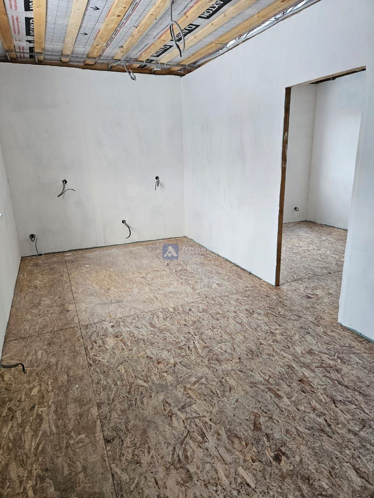 Отделка первого этажа подготовлена под финишный ремонт.