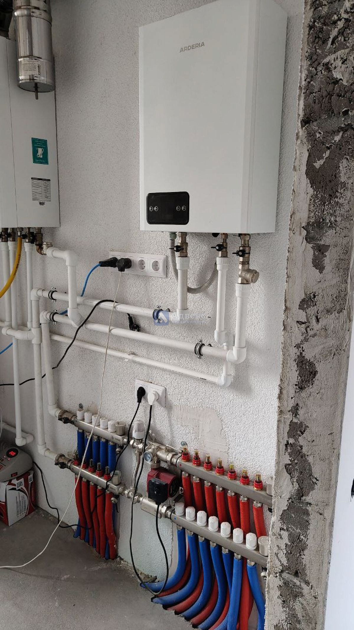 Установлены водонагреватель, электрический и газовый котёл.