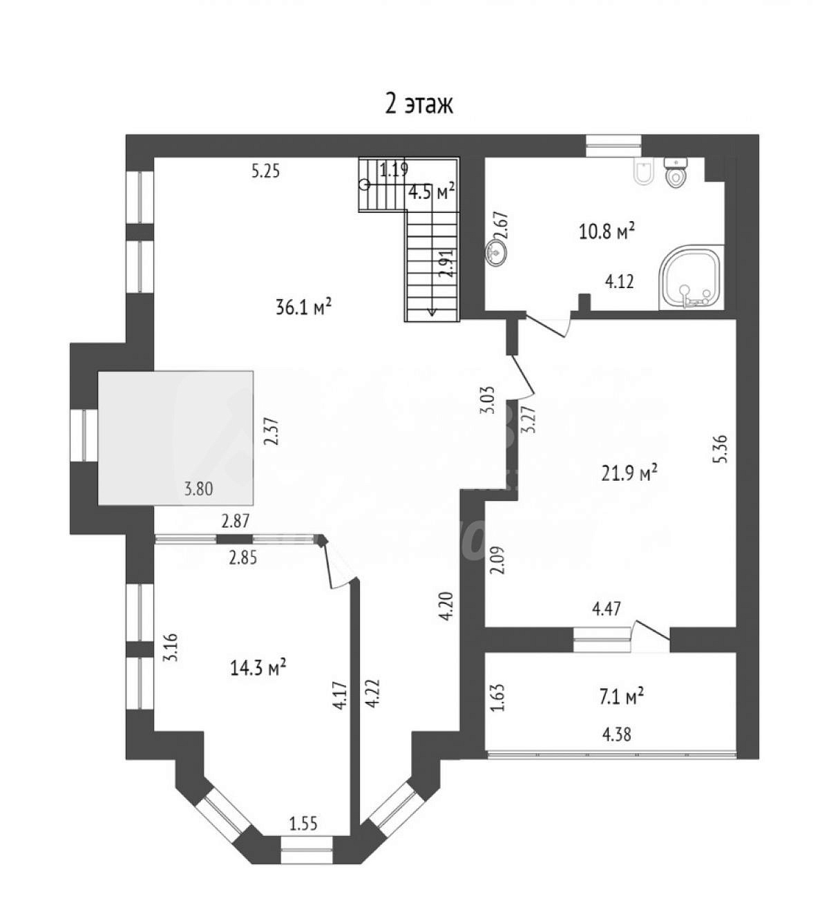 Две спальни на 2-м этаже, рабочий кабинет на 3-м этаже.