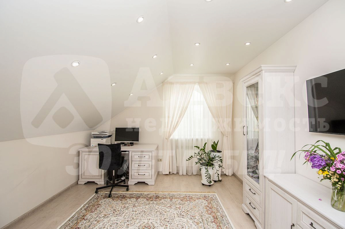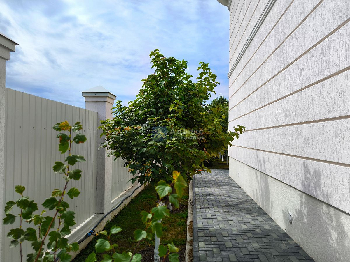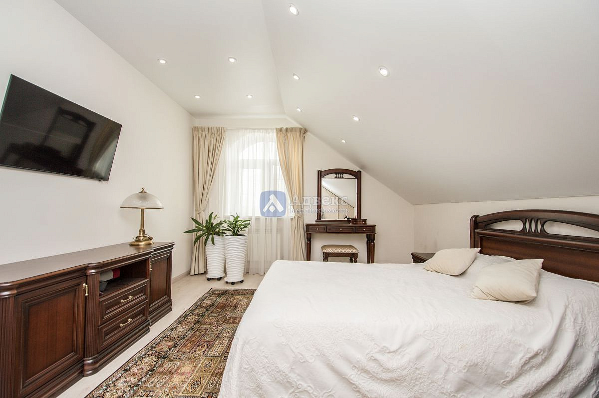 В доме нет бесполезных площадей, все квадраты правильно распланированы: холл-парадная для праздников, гардеробные, кухня и столовая, четыре спальни и спальня для хозяев с ванной и санузлом, сауна с зоной отдыха, хоз. комната и зимний сад, четыре санузла.