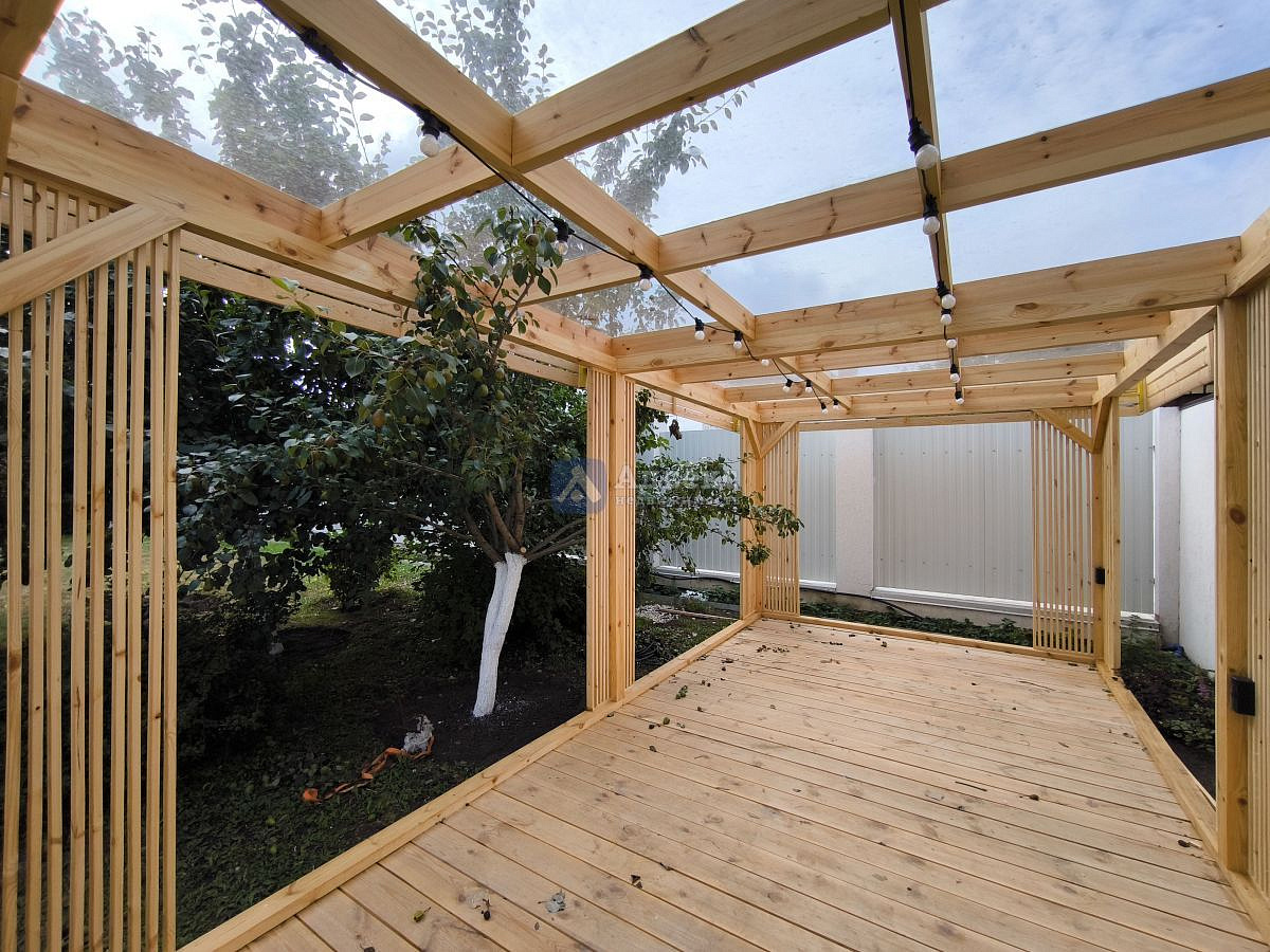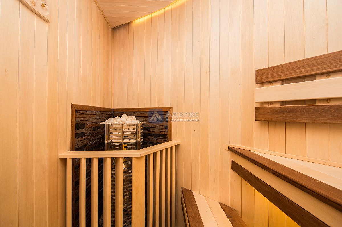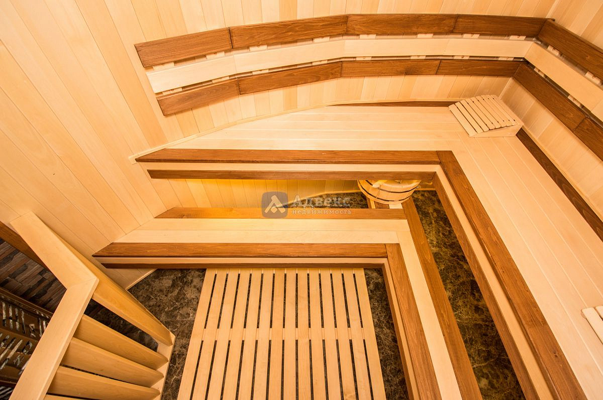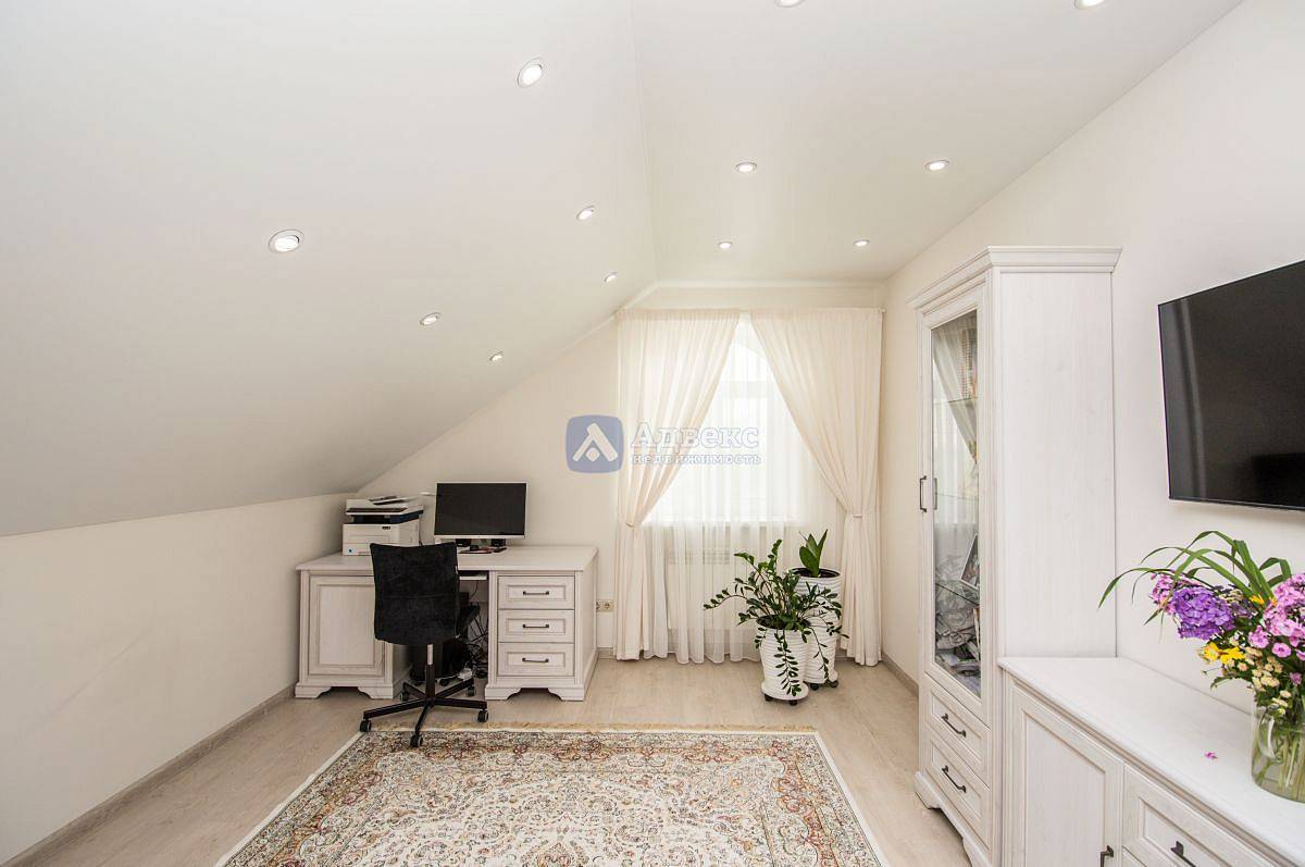 В доме нет бесполезных площадей, все квадраты правильно распланированы: холл-парадная для праздников, гардеробные, кухня и столовая, четыре спальни и спальня для хозяев с ванной и санузлом, сауна с зоной отдыха, хоз. комната и зимний сад, четыре санузла.